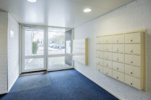 Gezamenlijke entree met belplateau voorzien van camerasysteem (videofoon) en brievenbussen. Toegang tot de ruime entree met lift en trappenhal naar de verschillende etages. Op de begane grond toegang tot de fietsenbergingen.