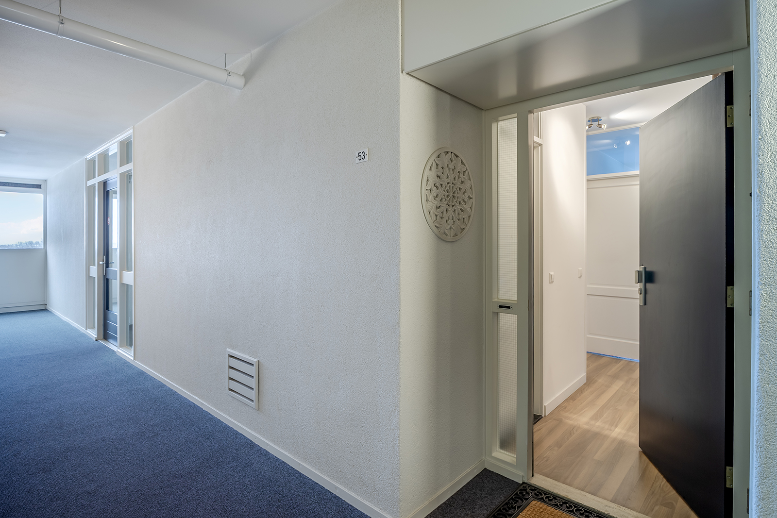 Appartement op de 8e verdieping. Overdekte entree/hal met aansluiting naar alle vertrekken binnen het appartement.