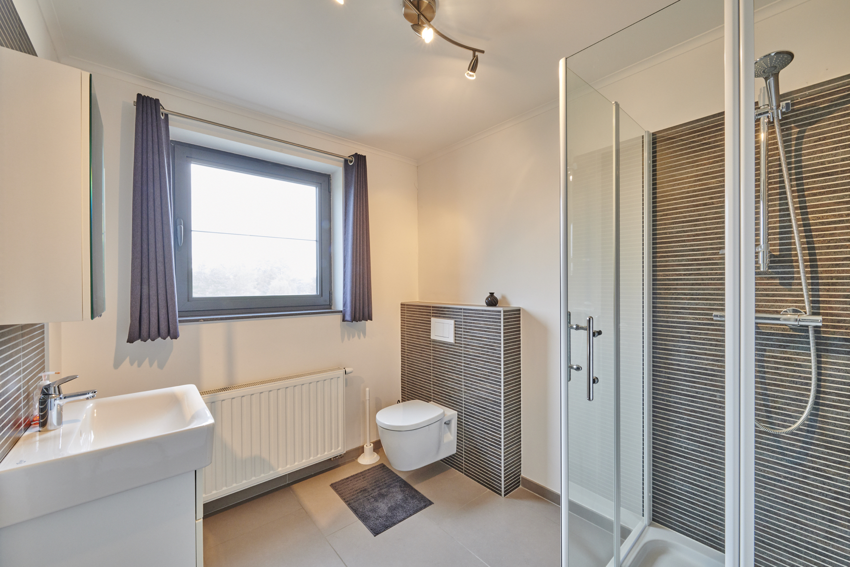 Moderne, luxe 2e badkamer met wastafel, 2e inbouwcloset en douche.