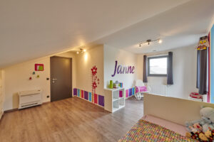 Via de badkamer een doorloop naar de garderobekamer met 2e vaste inbouwkast met schuifdeuren. De garderobekamer is eveneens voorzien van een massief eiken planken vloer.