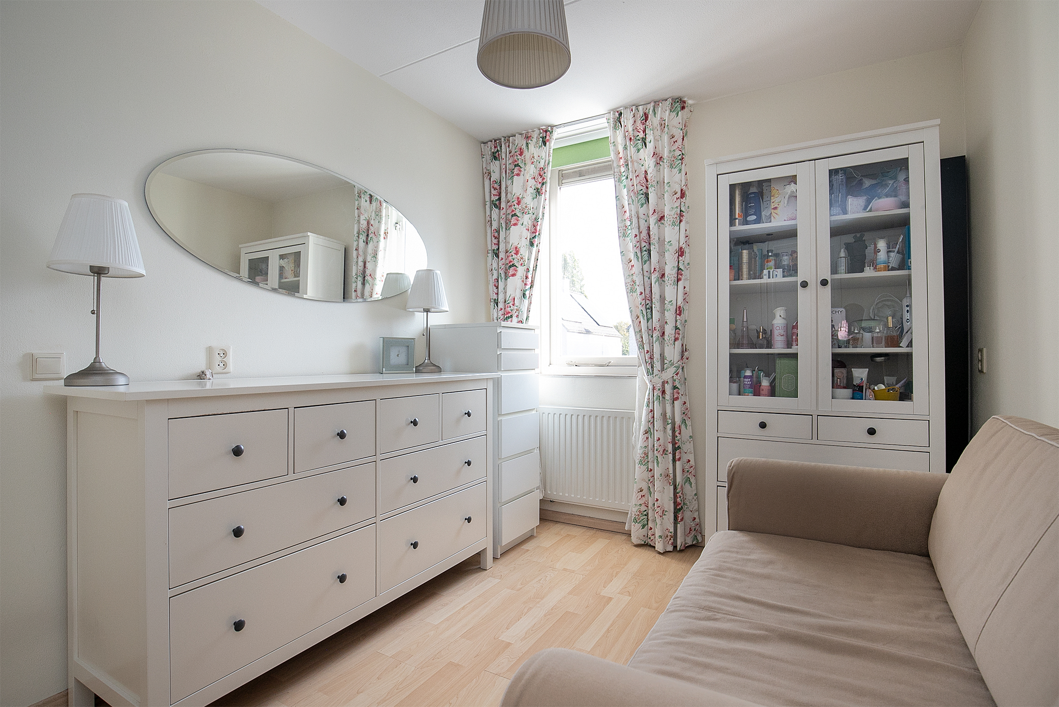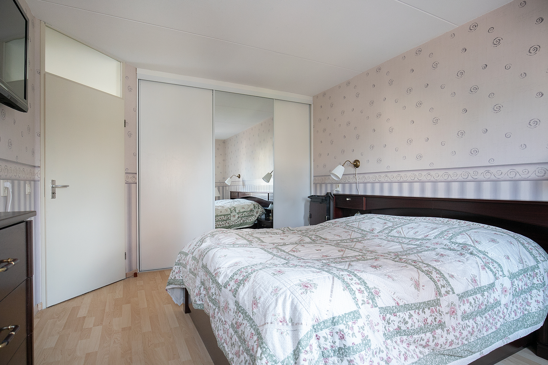 De drie slaapkamers hebben nagenoeg hetzelfde afwerkingsniveau, namelijk een laminaatvloer, texwerk en structuurverf wanden en een spuitwerk plafond. Twee slaapkamers zijn aan de voorzijde van de woning gelegen en één slaapkamer is aan de achterzijde van de woning gelegen. Twee slaapkamers hebben tevens de beschikking oer een praktische vaste kastenwand.